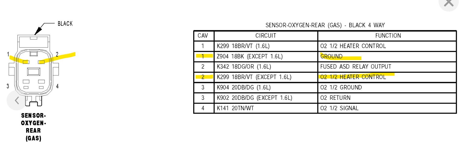 there are no OEM diagrams for the heater circuits for some reason. Thats been happening a lot lately, but there should be 2 wires with 12volts across them for the heater. Sometimes at the sensor they are the same color wires. But the 2nd diagram shows the Oxygen sensor connector, if you are missing the 12volts, which most likely you are, you'll have to trace the wires back to find the open circuit. These wires sometimes run up into the body of the vehicle and are supposed to be in a rubber grommet, but the wire can break these points if it is rubbing against a contact point of the vehicle.