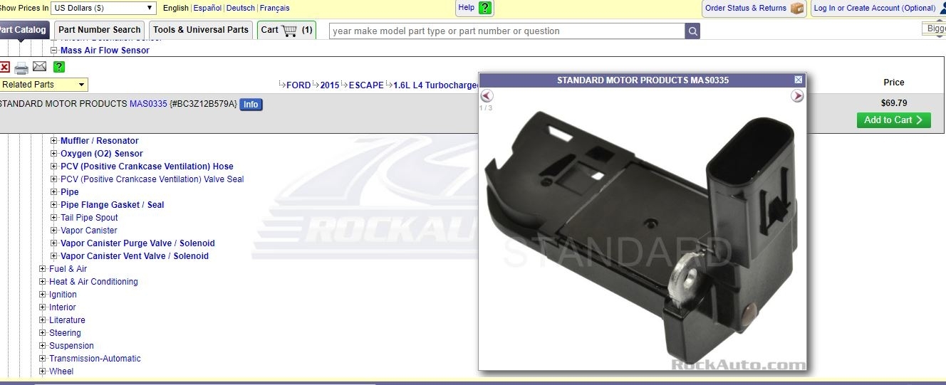 The mass air flow sensor has a fault. I posted a flow chart, picture and the part for you to view.
