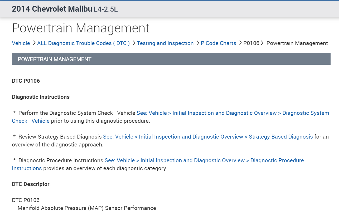 Direct Trouble Code (DTC) P0106 is set for Manifold Absolute Pressure sensor(MAP) performance and DTC P0303 is set for a misfire in cylinder #3. I have included in the diagrams down below the factory diagnostic troubleshooting guide for both of these DTC's for your vehicle. Please go through these guides and get back to us with what you are able to find out.