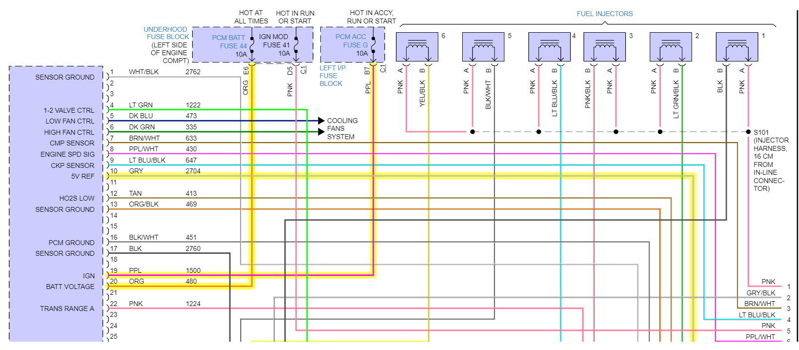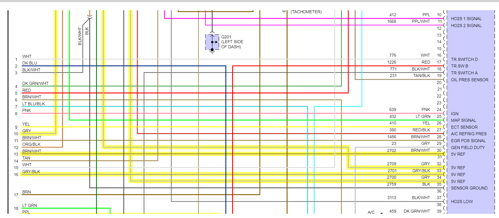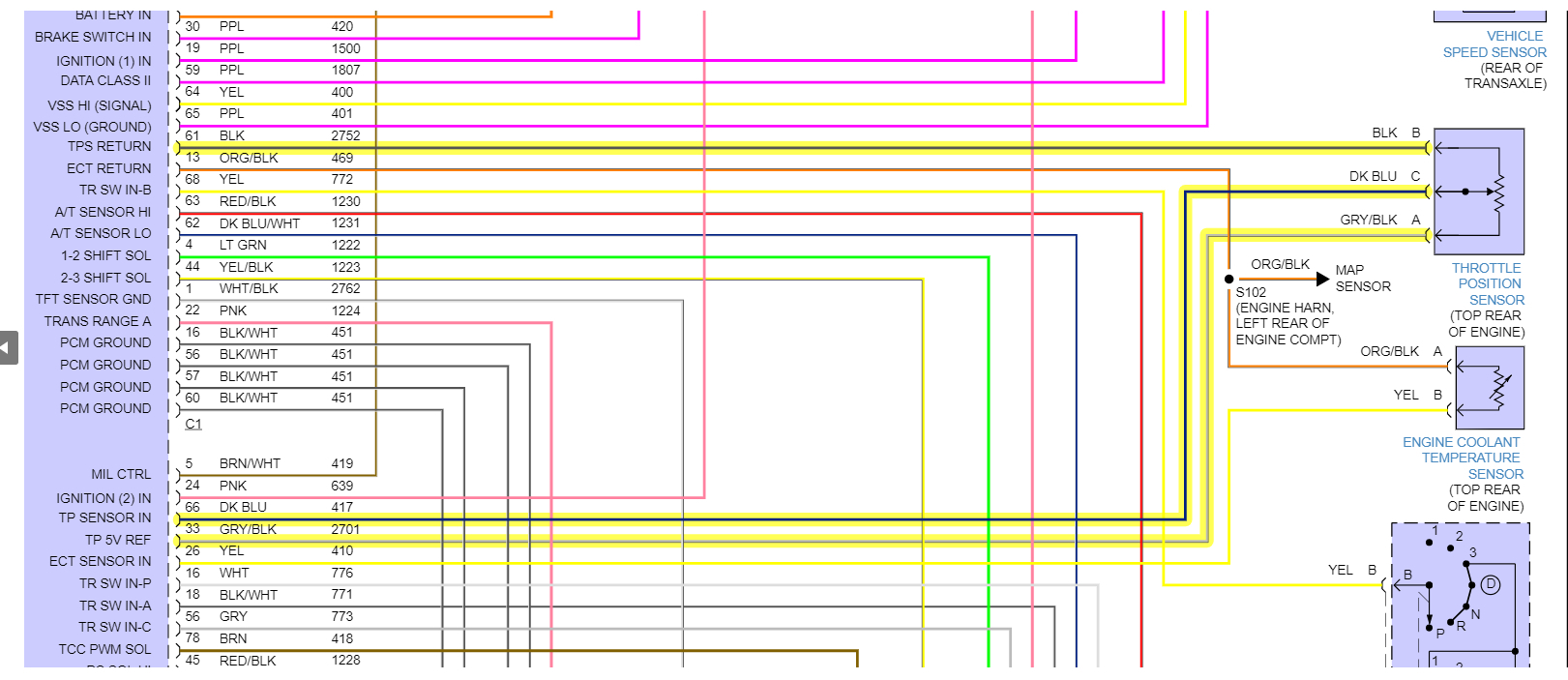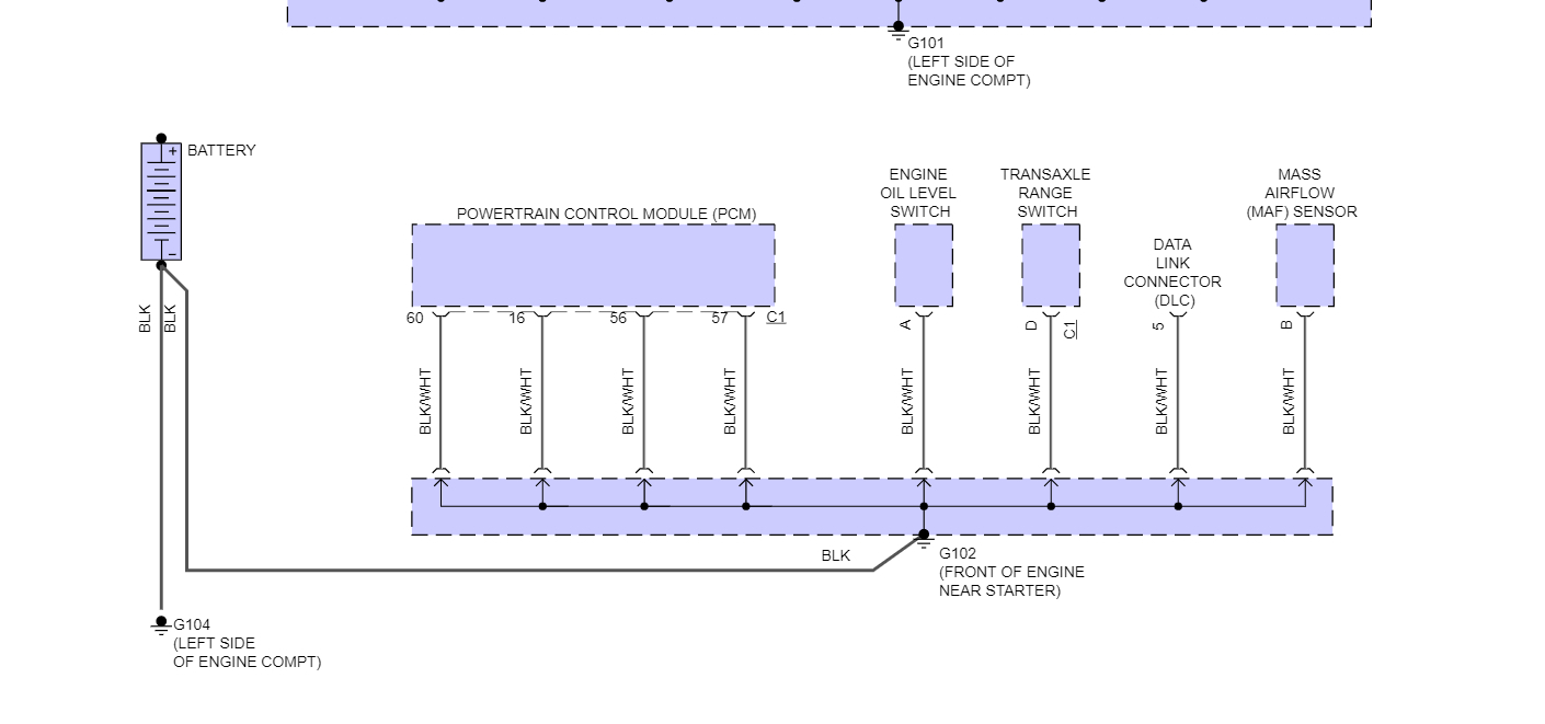They put all the PCM grounds together like this, and if one is bad it effects the whole lot of them. Black/white wires.