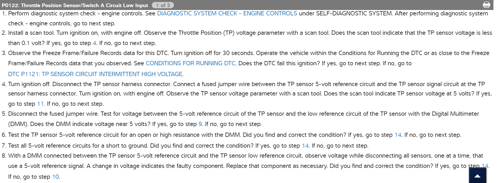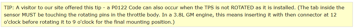 Hey, I was going through your comments here, if you put the old TPS sensor back on the vehicle, I really think you should try a new sensor. We get brand new sensors that are bad all the time. Try another TPS and have the codes cleared or disconnect the negative battery cable for a few minutes. You've tested enough that we should have come across a problem by now. Bring the new TPS back that you bought and tell them its bad and get another and try it.