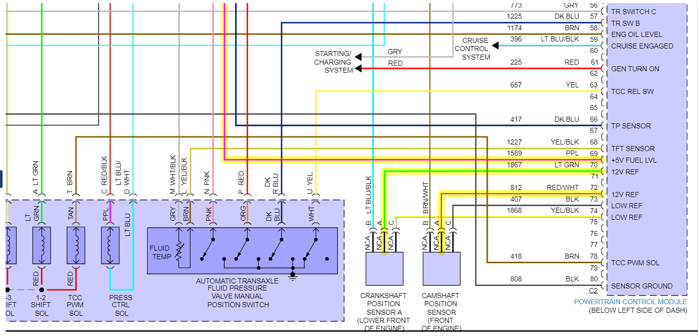 And to your questions, no you should not being seeing 12v on that Dark Blue signal wire at the ECM (Pin 66 Connector 2).
