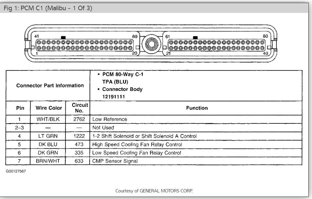 Connector 1 (blue) has the main power feed for the ECM. The Orange wire (Pin 20)