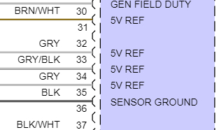The grey wire above those, you'll see, is a 5 Volt reference wire. Check all these after the battery is good and charged up.