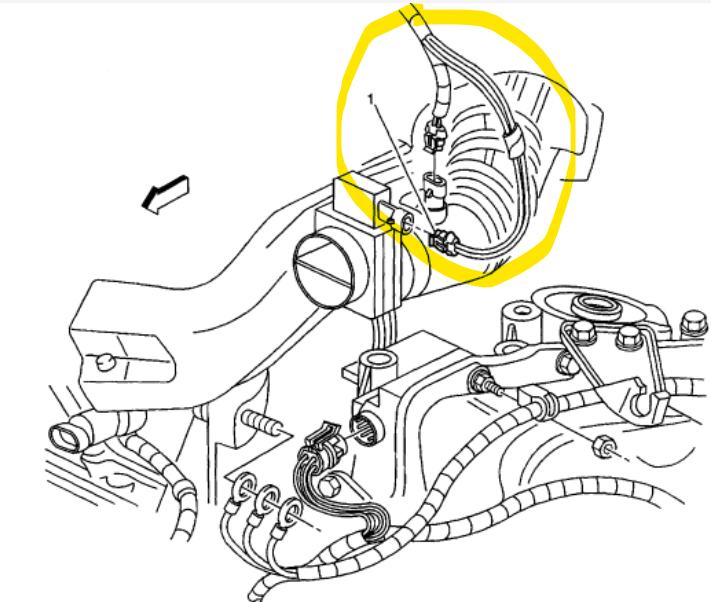 It dropped back down to 1.60 but no lower. Back probed black wire key on it reads .01when touched. The idle is like sitting there revving the engine up and down but it's doing that on its own. The blue wire I opened the throttle body all the way and when it reached 4.42 it started dropping with me holding it open which to me was weird. Back probing with key on again, grey/black 5.01 --- black .01--- blue 1.56 upon touching needle 4.42 but this time it didn't drop at all until I backed off the throttle. 3 reading with the same results. By the way, I really appreciate you sticking by me this long and helping me. I started it still revs up high, kind of up and down. Take the air boot off between the air filter and mass flow sensor or at the neck of the throttle body?