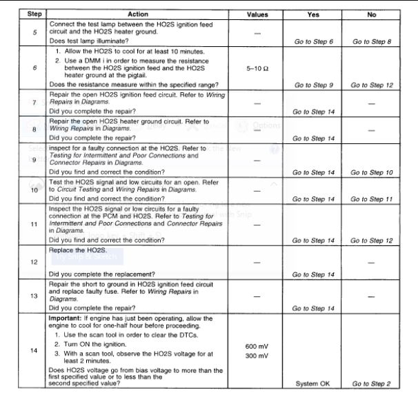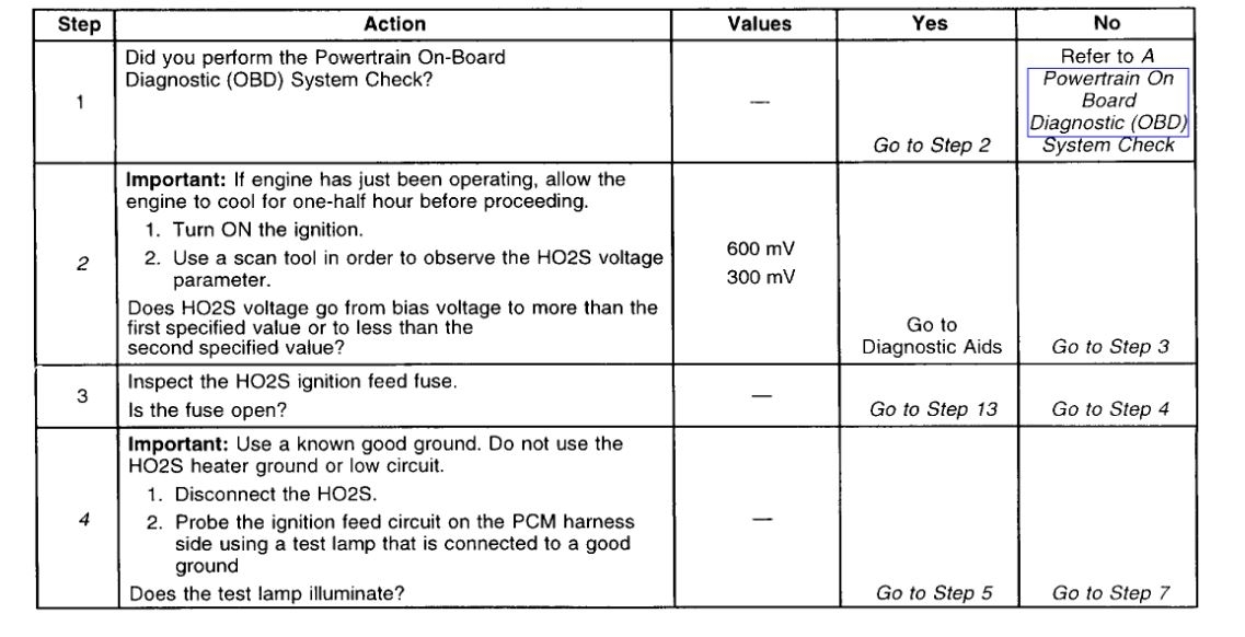 4. This step ensures that the ignition feed circuit to the HO2S is not open or shorted. The test lamp should be connected to a good ground, in case the HO2S low or HO2S heater ground circuit is faulty.