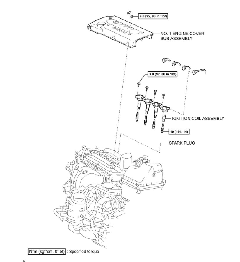 Open the hood and look for the accessory drive belt. That marks the front of the engine. You start counting from that end. So, 4 on that engine is on the transmission end. That is pretty much the same on all inline engines. My suggestion would be to swap the coils in 3 and 4 and swap the plug from cylinder 4 into cylinder 2. Now if the misfire moves to 3 you can say it's the coil, if it moves to 2 it's the plug. The torque values are shown in the second image, but the numbers are hard to read, the plugs are 14 ft lb, the coil bolts are 80 inch pounds. The engine cover is the same as the coil bolt. I generally put the plugs in tight and the coil bolts and cover simply snug. No need to strip them. Now if you don't know when the plugs were changed last you might want to replace all 4 with new as they call for them to be changed at 120,000 and then swap the coils.