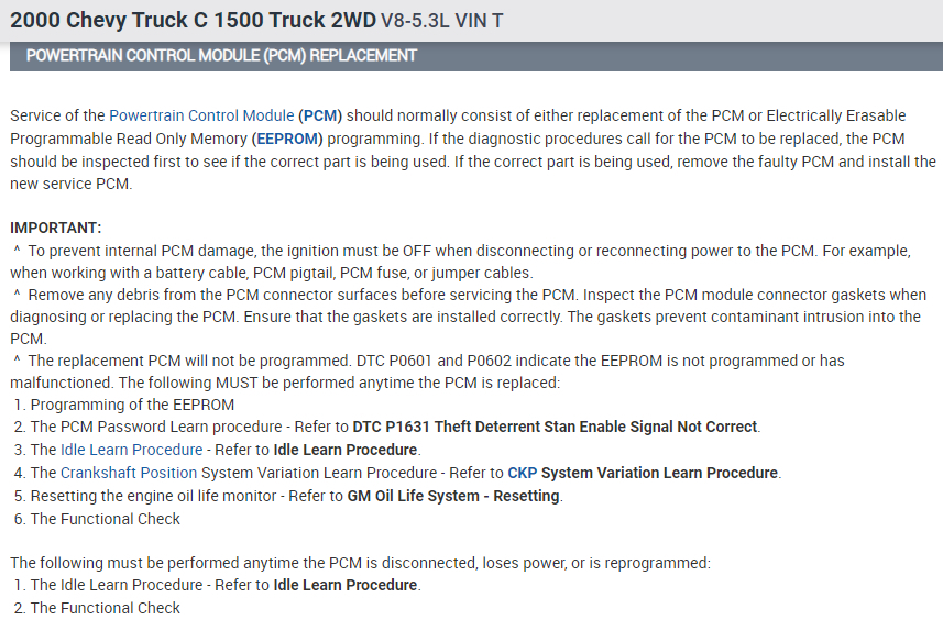 Okay, let us know how things go after ECM replacement. There are a few relearn procedures that will need to be done after replacement. I've attached picture steps below showing how to replace the ECM and the relearn procedures. Hope this helps and thanks again for using 2CarPros.