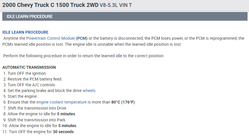 5. Perform the Idle Learn Procedure. Refer to Idle Learn Procedure.