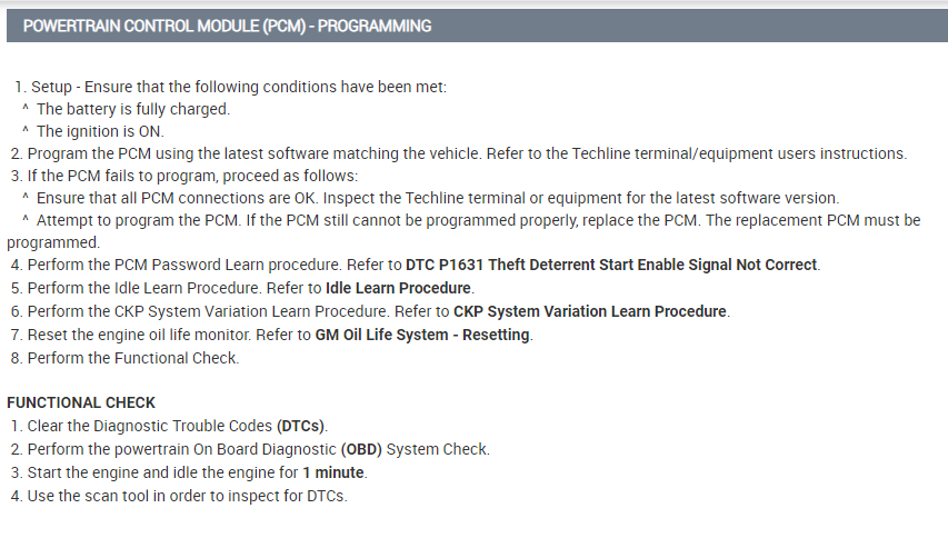 ^ Ensure that all PCM connections are OK. Inspect the Techline terminal or equipment for the latest software version.
