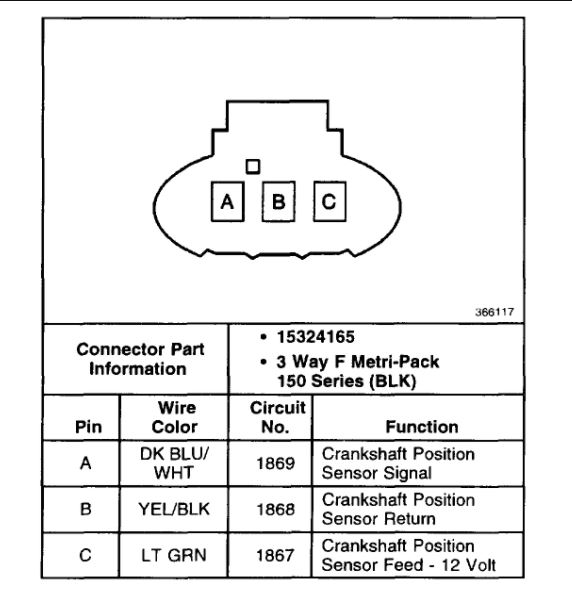 Okay, I attached the wiring diagram of the crank sensor and the connector.