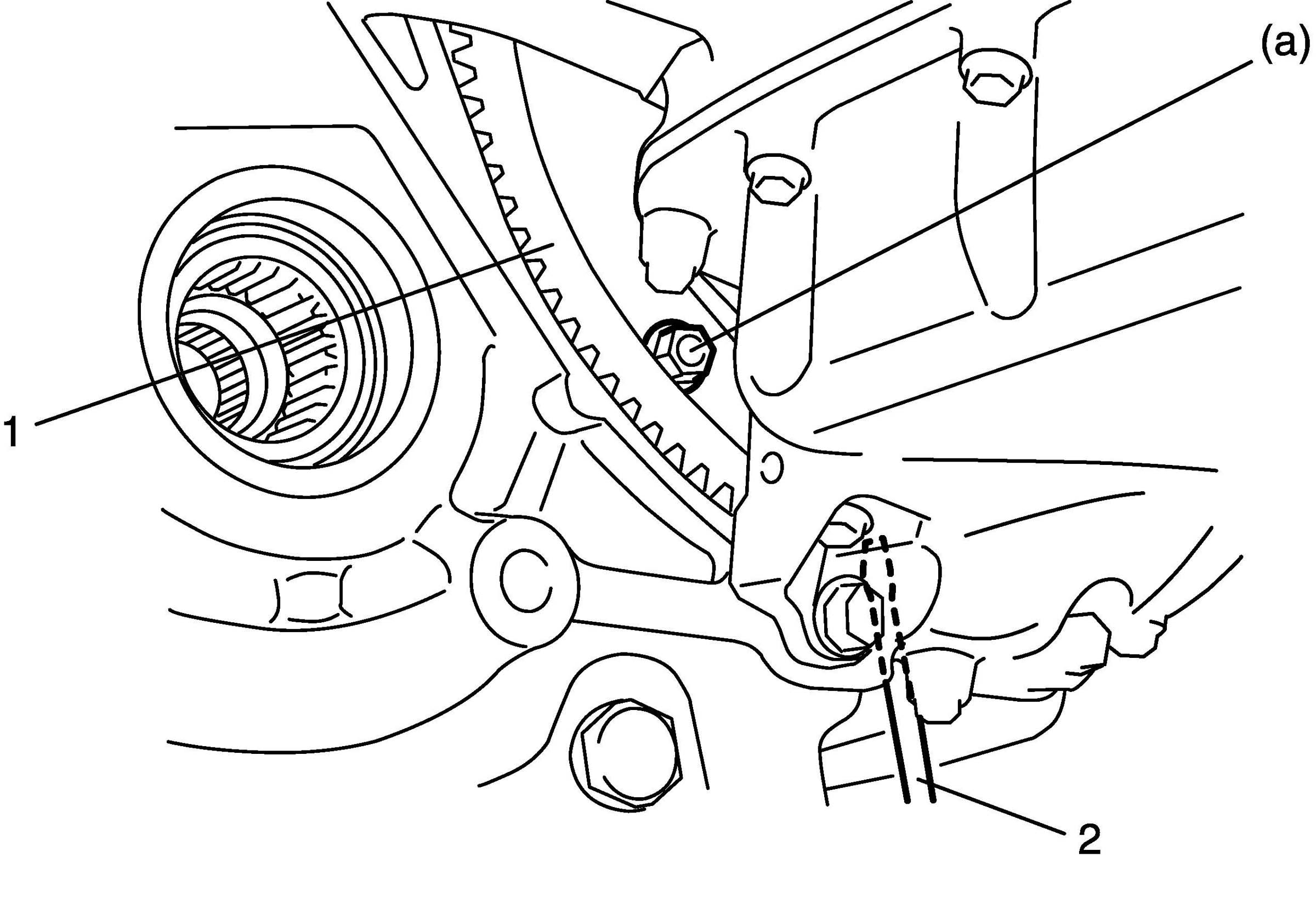 To lock drive plate (1), engage a flat head rod or the like (2) with drive plate gear.