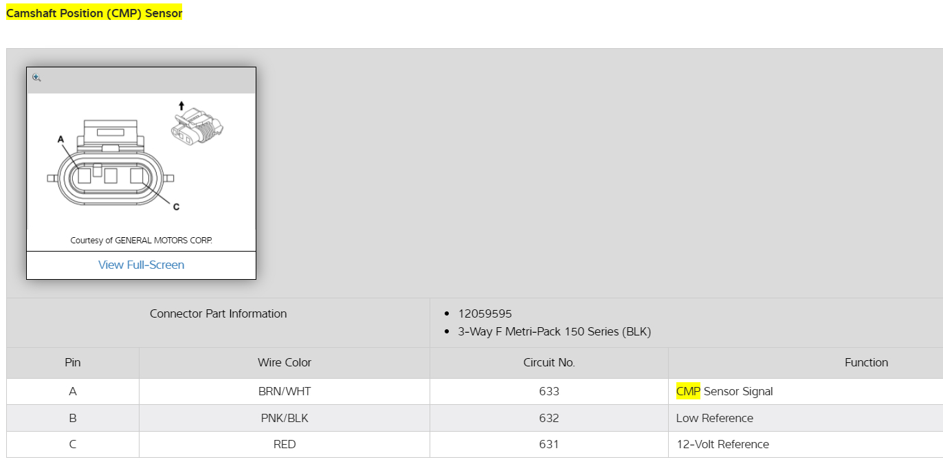 If you have any questions about testing just ask, and I'll see if there's any Technical Service Bulletins on the Cam Sensor.