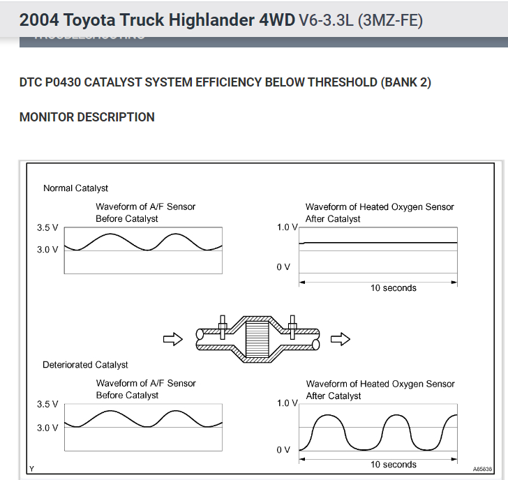 Hello again Steve, so I did replace my 02 sensor and looked at the live data and it’s showing 0 volts only when i'm braking. Just like before it won’t show check engine light until I go on a short trip. Is this normal? I heard of a TSB that Toyota had where they updated the software on the computer and installed a new style catalytic converters. Will I still be able to get that update?