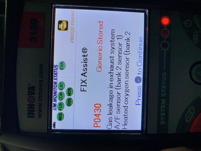Check engine light on and code P0430