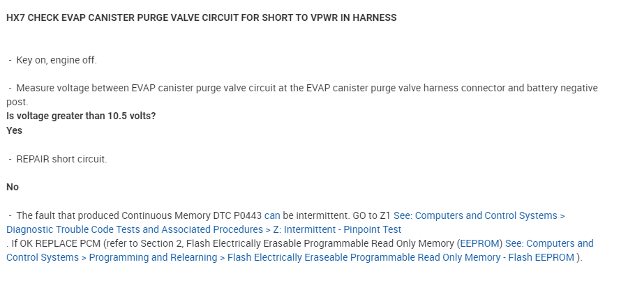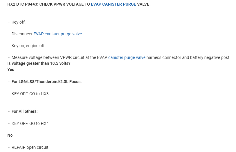 I attached the diagnostics below specific to the code. Pics 1 - 7 contain the directions. The remaining pics show the connector and wiring schematics for the powertrain control circuits. I highlighted the wiring for the purge valve. However, when I highlight the power wire, it covers other things as well, so take your time when going through them.