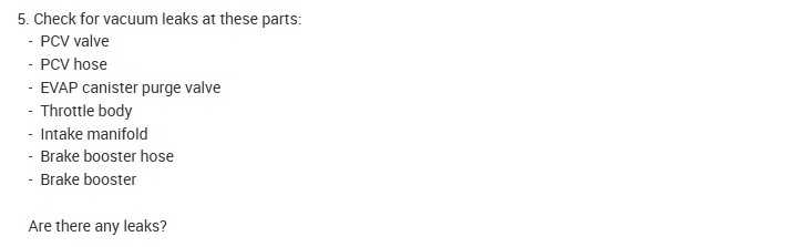 but the first thing I would check is the live engine data on the scan tool, and look for the Long Term and Short Term Fuel Trims (LTFT and STFT). If the percentage is positive such as above 10%+ you can then raise the rpm to about 1500-2000rpm and you should see that Fuel Trim number come down towards 0% or at least below 10%. That indicates a vacuum leak, If it is a vacuum leak, the best way to find it is using a smoke machine on the intake manifold, its the quickest and safest way to find a leak,