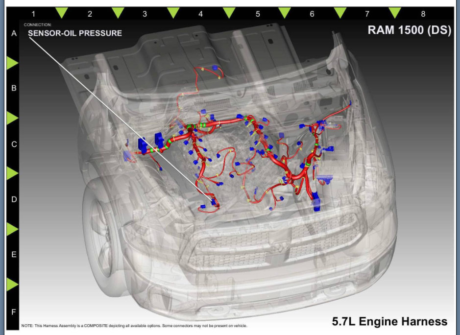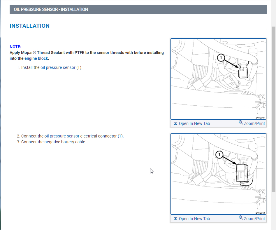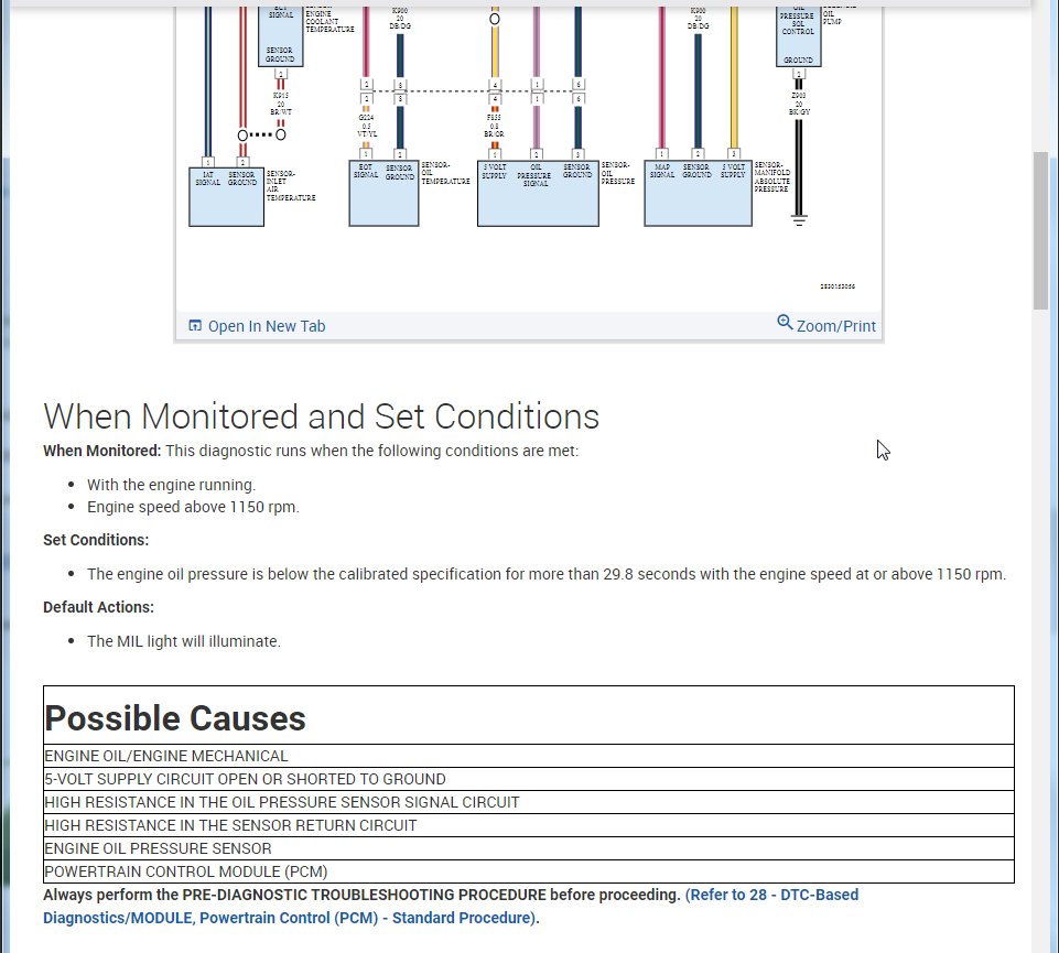 Verify that there is good pin to terminal contact in the Sensor and Powertrain Control Module connectors. Remove the Engine Oil Pressure (EOP) Sensor and ensure the oil passage/port is free from any blockage. If no problem is found, replace the EOP Sensor. (Refer to 09 - Engine/Lubrication/SENSOR, Oil Pressure - Removal) .