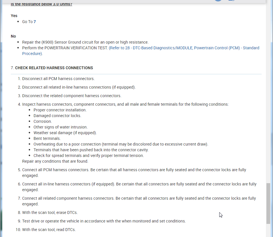 6. CHECK THE (K900) SENSOR GROUND CIRCUIT FOR AN OPEN/HIGH RESISTANCE