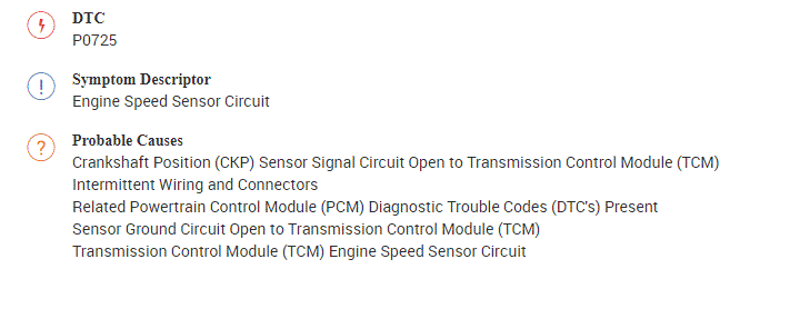 P0725 - ENGINE SPEED SENSOR CIRCUIT