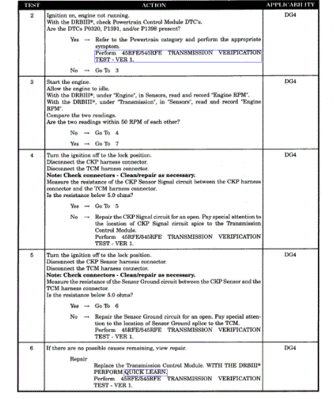 This code is set when the engine speed sensed by the Transmission Control Module (TCM) is less than 400 rpm and the engine is running (As reported by the PCM over the communication bus) for 2 seconds. This DTC can take up to five minutes of problem identification before illuminating the MIL.