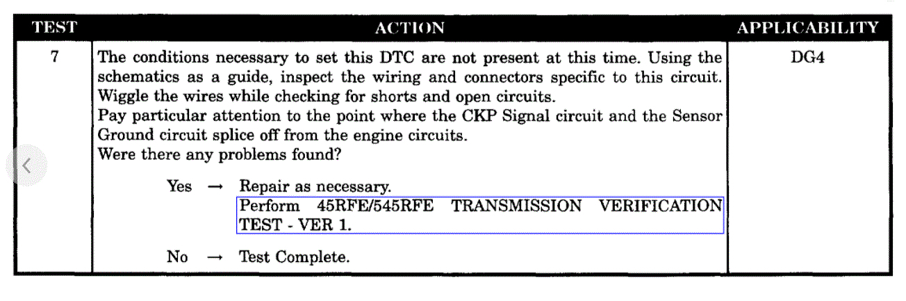 CKP signal circuit open to TCM