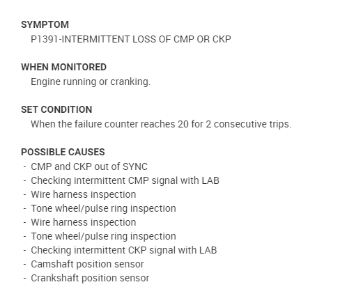Code P1391, loss of Cam or Crank signals?