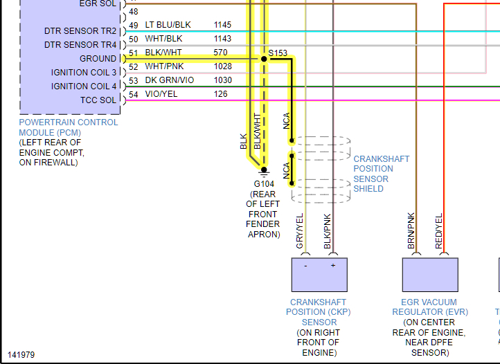 The last diagram is the engine computer ground, you can inspect that to make sure it's not corroded, and the connection is good. It's on the driver's side front fender, a black/white wire.
