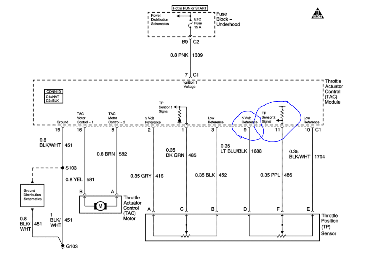 P1639 reading 5 volts at throttle position sensor with truck switched on and about 7.5 to 11.4 with truck running. Trying to find out if I have a short going to ground or a bad PCM.