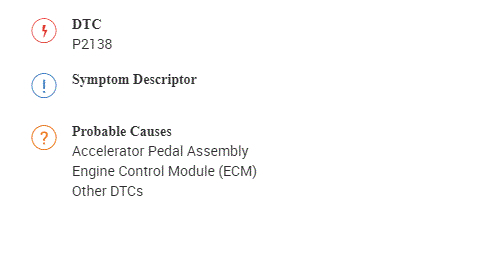 Check engine light on and code P2138