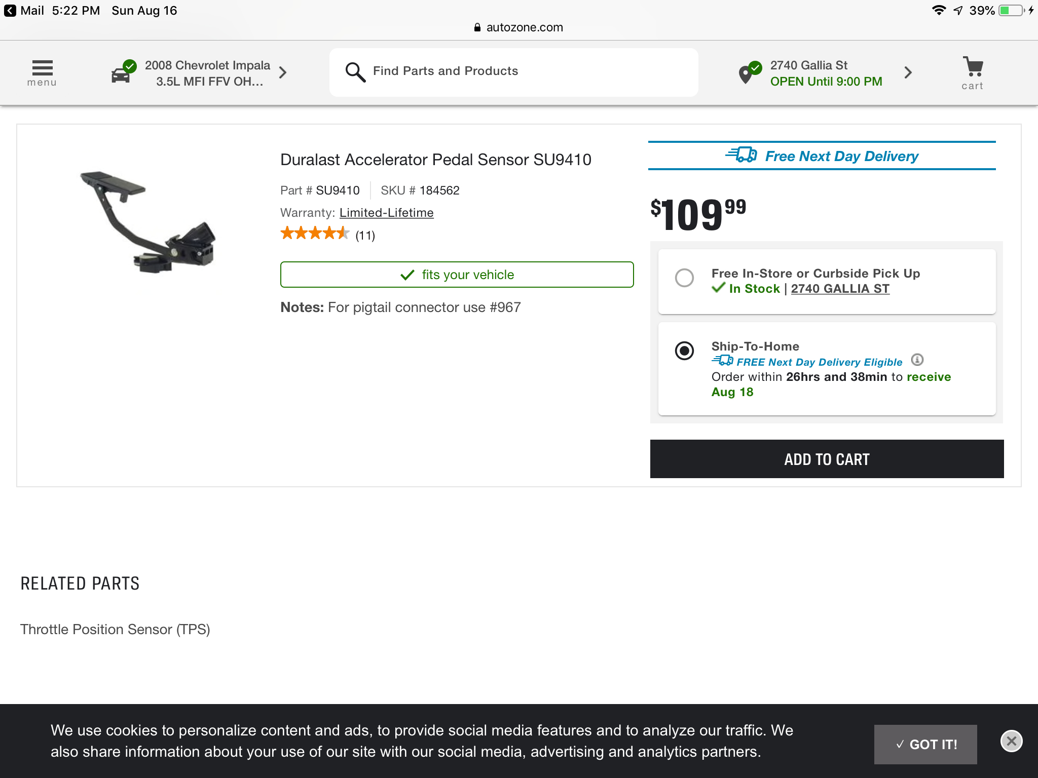 That is correct. That is the part.