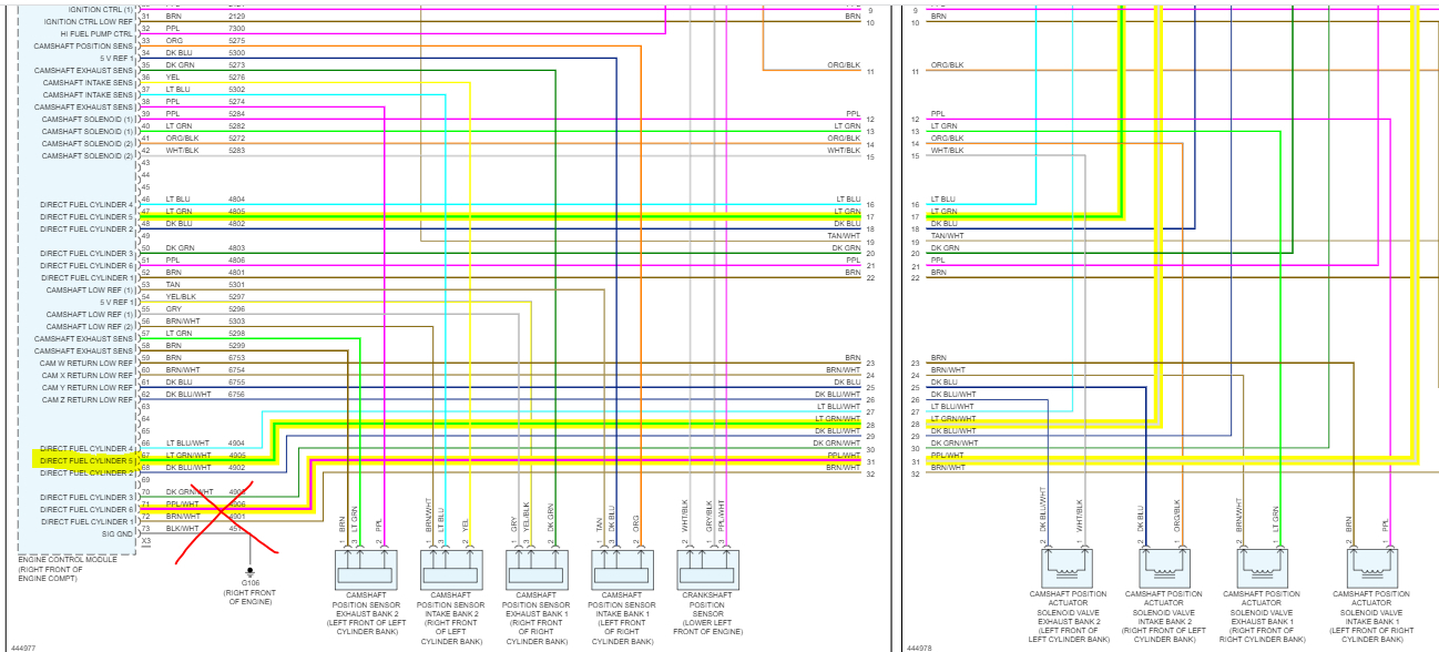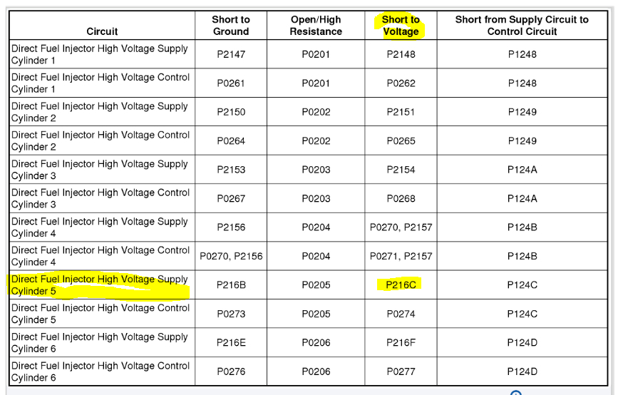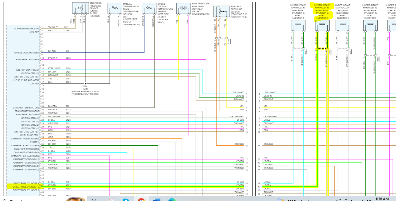 misfire on cylinder 5. dtc code p216c is for fuel injector 5 circuit high. i replaced the fuel injectors and still get the same code. i need the wiring diagram for the ECU to test ohms of each injector circuit as well as continuity between the ECU connector and injector connector.
