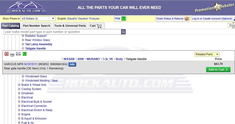 The little rubber mechanism used to open the trunk/tailgate of the car broke off. I am trying to find out what the name of that specific part is called?