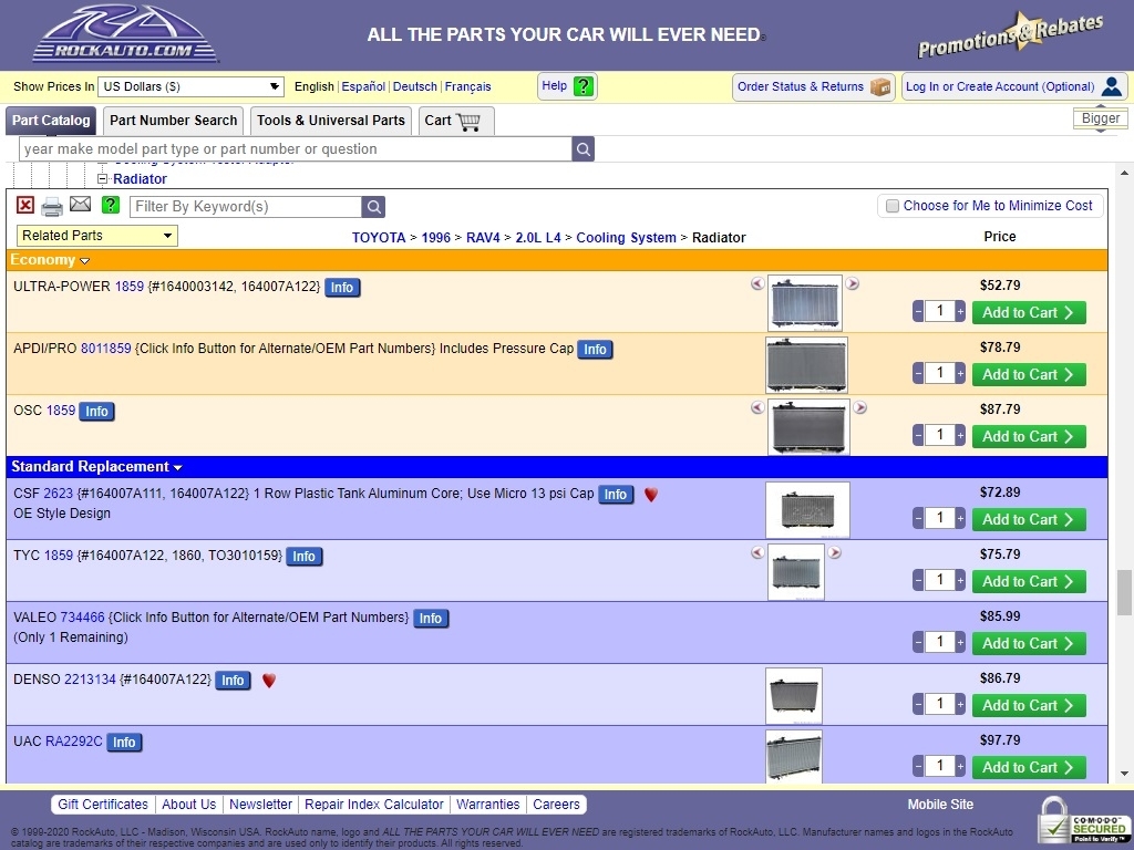 Check out my screenshot below from "Rockauto".
