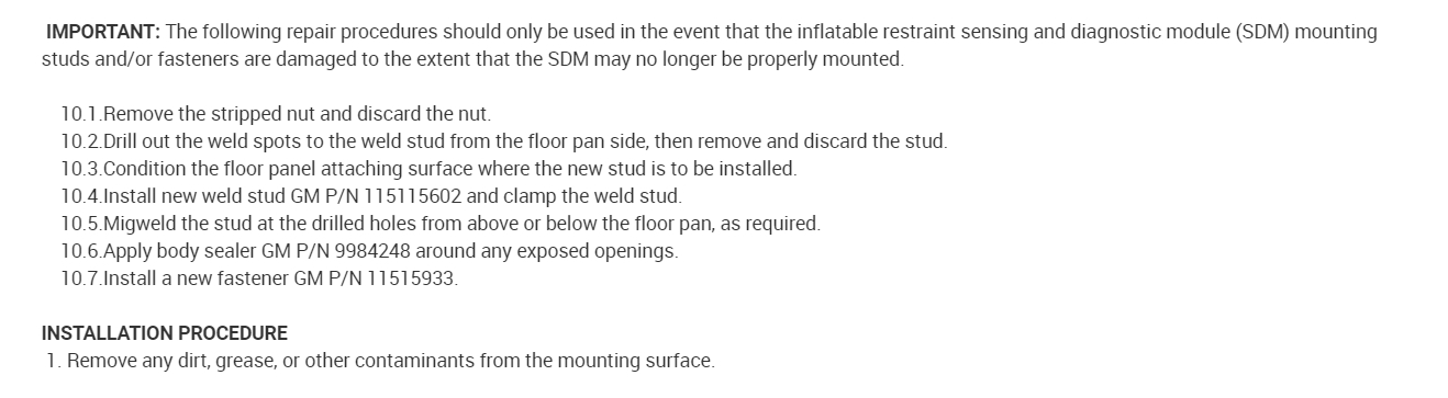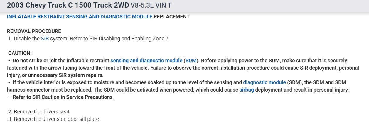 B1001 The Inflatable Restraint Sensing and Diagnostic Module (SDM) not working
