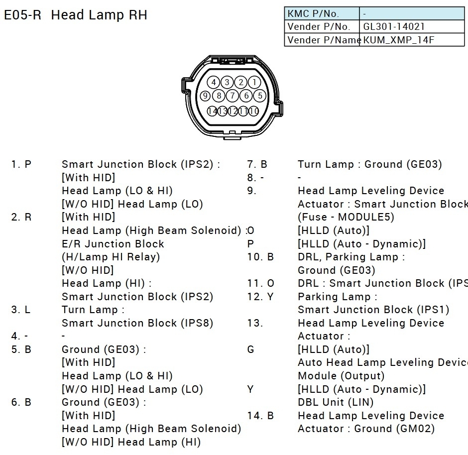 A mouse ate the passenger side 14 pin headlight plug. Can't see the colors of wires. New plug came with all black wires. Needing location on plug where the colors go. 2016 Kia Optima with LED accents