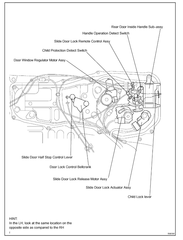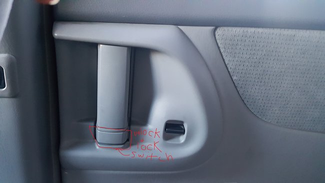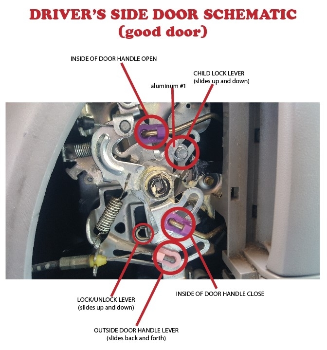 On the first picture, the tab to unlock the door moves slightly but doesn't stay and the door stays locked. On the second picture, the unlock button on the remote doesn't work either. You can hear it working and the tab moves back but it doesn't stay, as in the third picture of the driver's side passenger sliding door, and the door remains locked. What you see in the third picture of the driver's side sliding door does not happen to the passenger side sliding door. I can see the red mark appear but then it hides back again like if something is blocking it from sliding all the way. At one time the open door icon on the cluster lights up red and a beeping sound starts meaning a door is ajar. When checking the passenger sliding door from the outside, the door has not locked entirely and will have to push it locked so the beeping sound terminates.