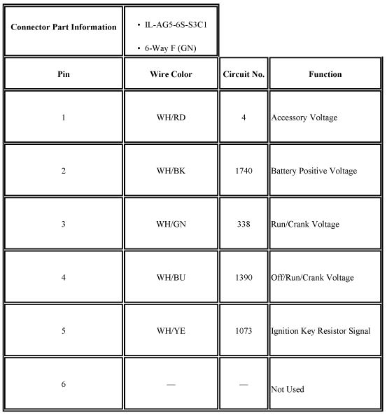 Pin 4- Battery voltage with only key in, 5 volts with key in run position. Less than 5 volts volts in the start position. This is the signal for the key reader having the correct key.