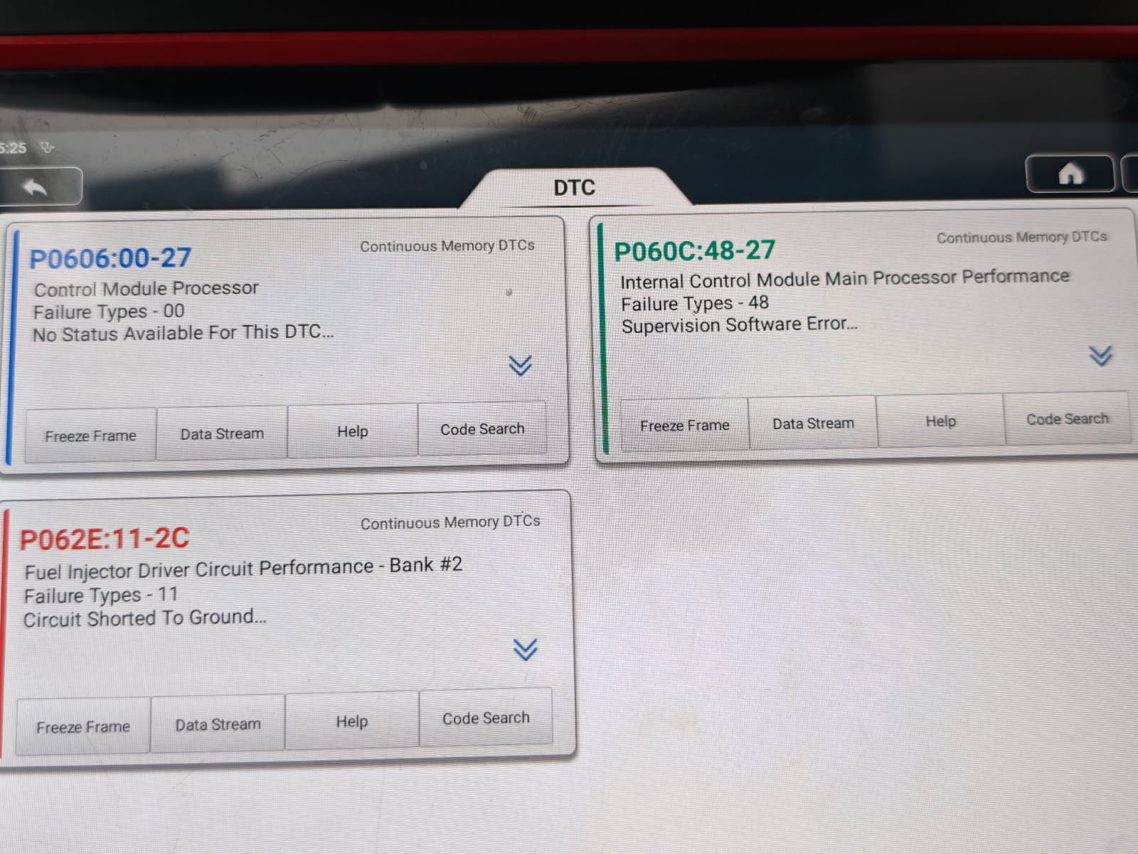 P0606:00-27,P062E:11-2C(Bank #2 failure) circuit shorted to ground.P060C:48-27..i have changed injectors and ecu..sometimes cant connect obd scsnner to car