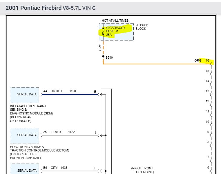 The last two pics are of the computer data lines. Note Fuse 11 in the interior fuse box which is for the cigarette lighter as well as powering pin 16 on the DLC, needs to be checked (see last pic for location). In addition to checking the fuse, make sure there is power to and from it.