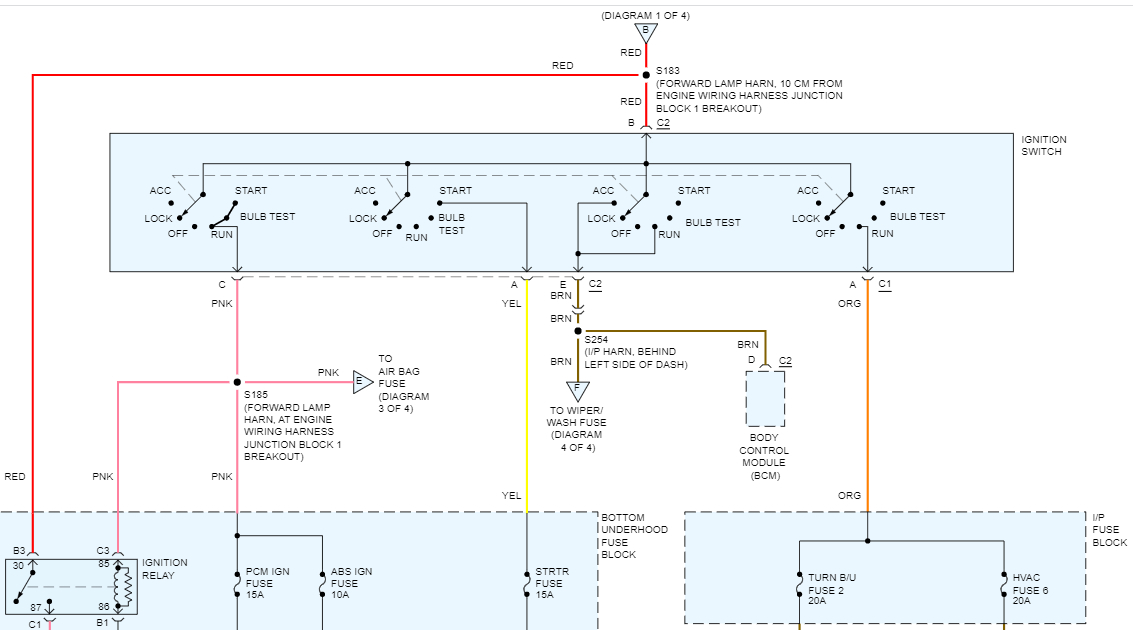 One of the wires from the ignition switch is orange. When you have the key in the run position, it sends power to fuses in the IP fuse box. I attached a pic below so you can reference what I am saying.