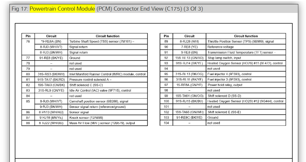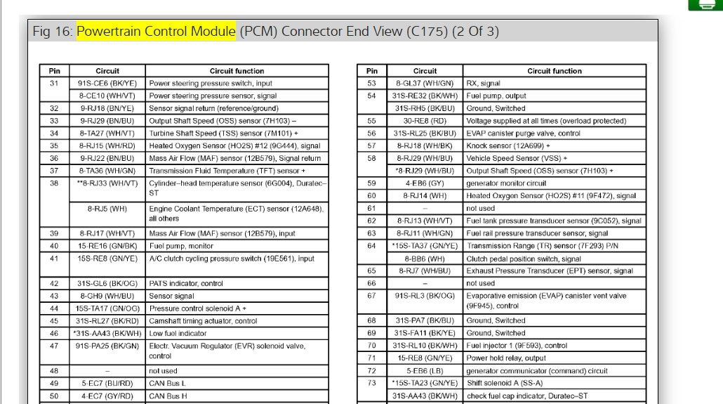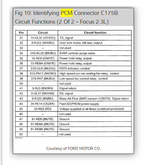 Okay, in the diagrams down below I have included all of the PCM Pinout diagrams for the Ford Focus. Please go through these diagrams and get back to us with how everything turns out.