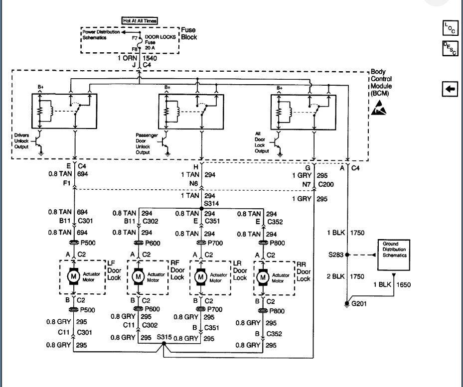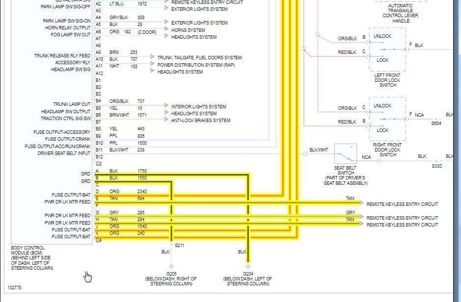 Let's try to confirm that. Can you put a new fuse in, unplug that connector so it doesn't blow and then operate the door switches (with the connector of the doors all plugged back in, obviously)? If everything on the door, specifically the locks, work then the connector that we are looking at on the wiring diagram is not correct.