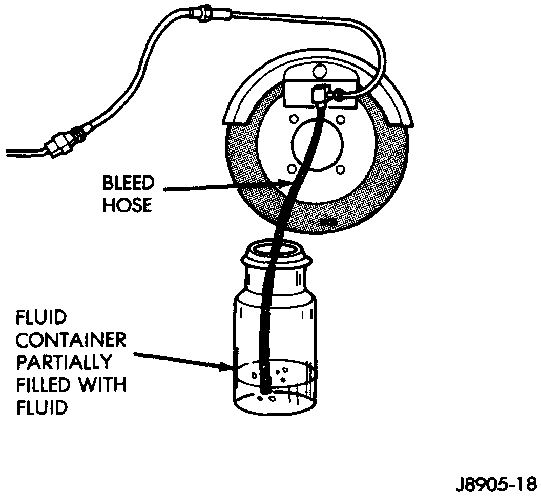 - Be sure end of bleed hose is immersed in fluid. Immersing hose end in fluid prevents air from being drawn back into cylinder and brake line.