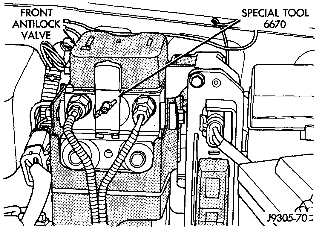11. On models with ABS, if a replacement front antilock valve and motor assembly has been installed, bleed new valve as follows: