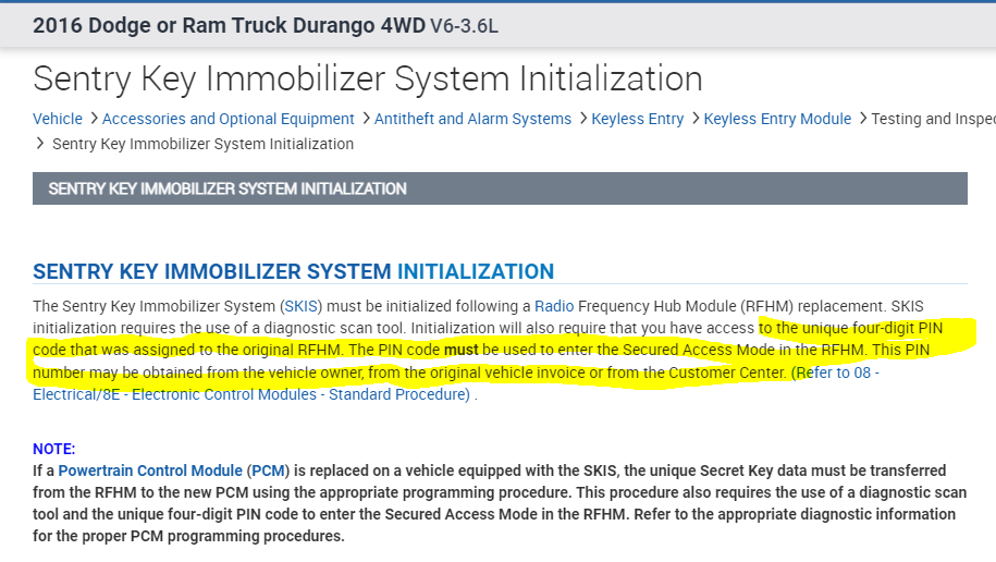 Need the Pin Code the 4 digits number (RFH) from my VIN