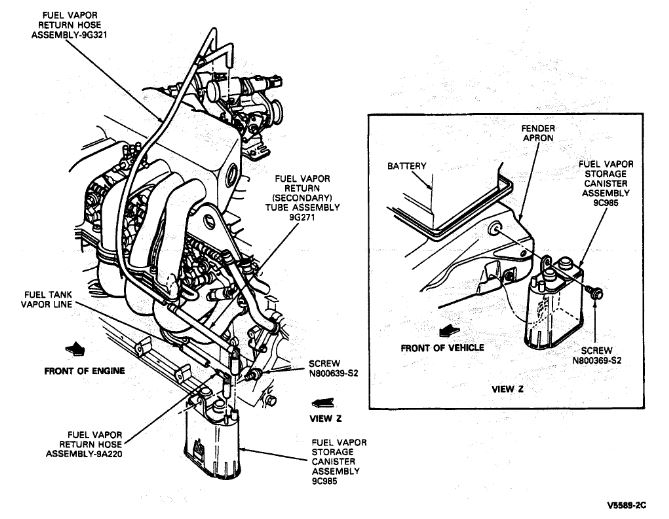 There is a plastic box on the right side and below the battery that is missing a hose.