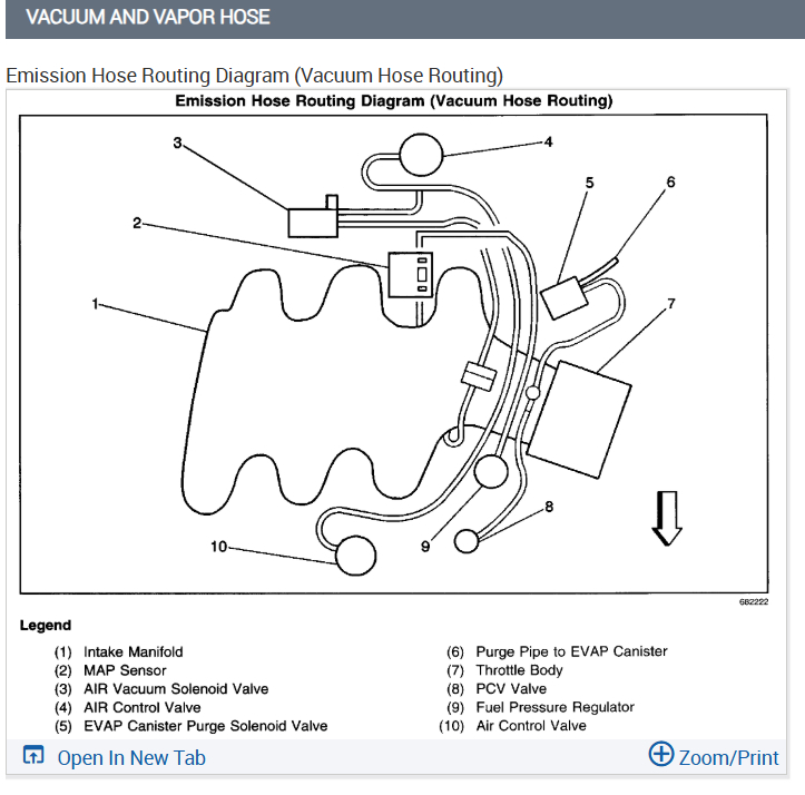 Okay, I had this problem with it over heating and so far, I have changed the radiator, water pump, thermostat, flushed the heater core, only to find out my intake manifold was cracked. So, I changed the manifold and gaskets etc. Now I have stumbled across a vacuum line coming from somewhere on the passenger side running to the back side of the motor and it is broken on one end not connected on the other. Can you help with a diagram for the vacuum lines please?