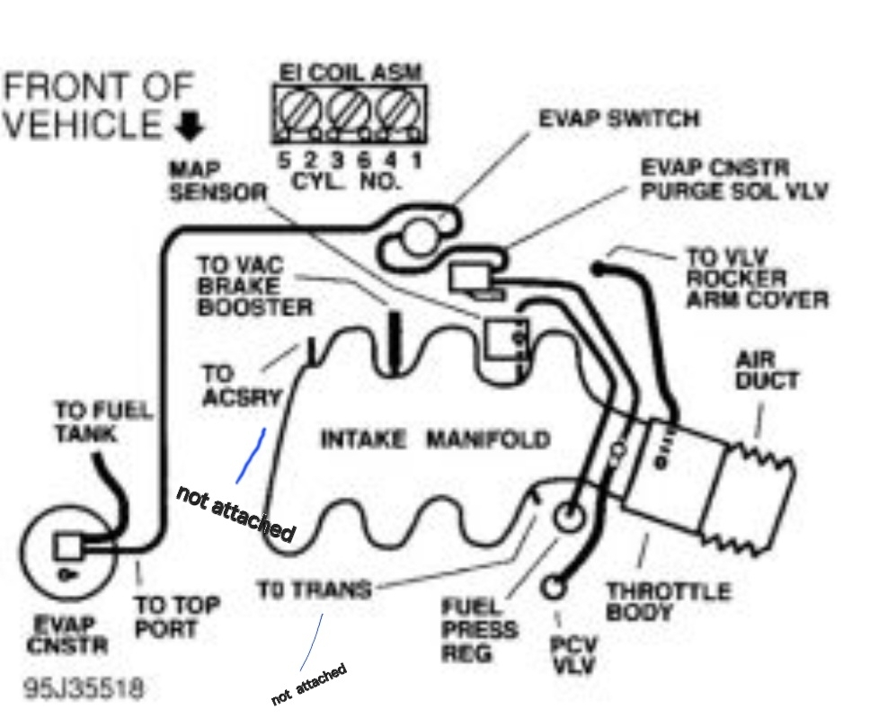 Okay, this is a better diagram of what's going on there but if you noticed the vacuum that says transmission and the one that says accessory are not hooked up to anything.