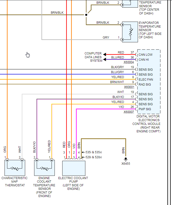 There are two fuses that we need to check. F23 and F02. F02 is for the characteristic Map Thermostat and coolant pump. The F23 is the 12 volt feed for the pump so they both need to be good.